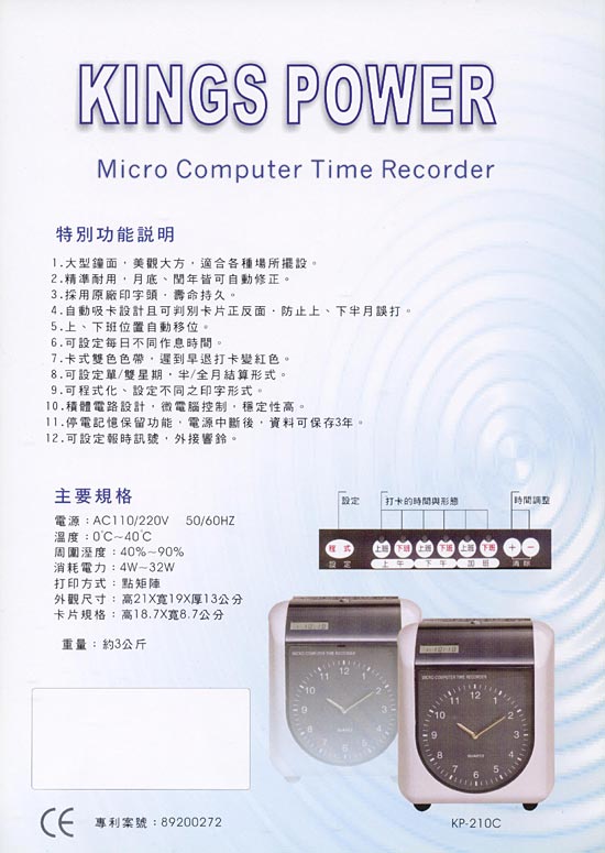 KP-210C金品牌微電腦打卡鐘[KP-210C]